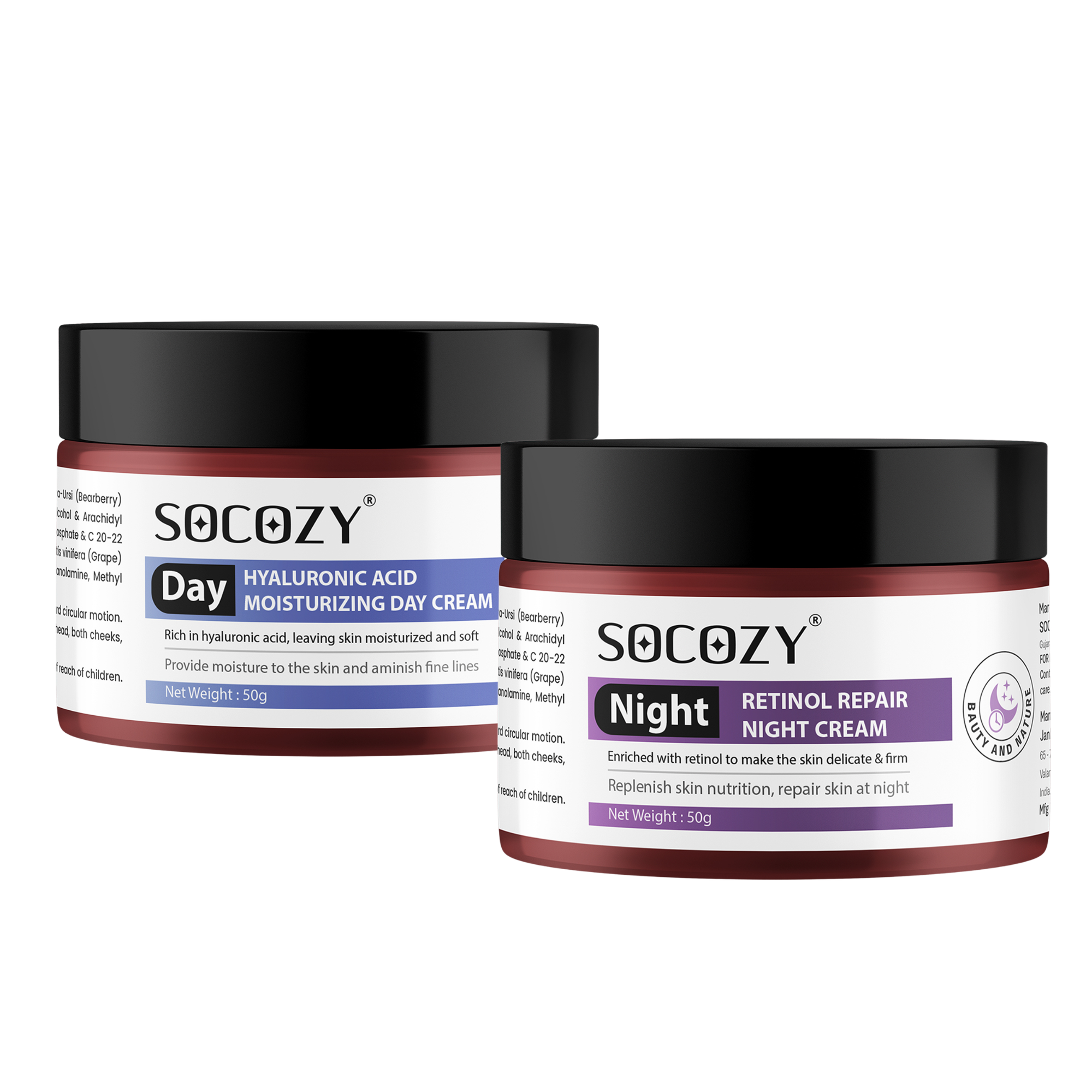 Upgrade your skincare routine with the SOCOZY Day & Night Cream Combo, specially designed to hydrate, repair, and rejuvenate your skin around the clock.